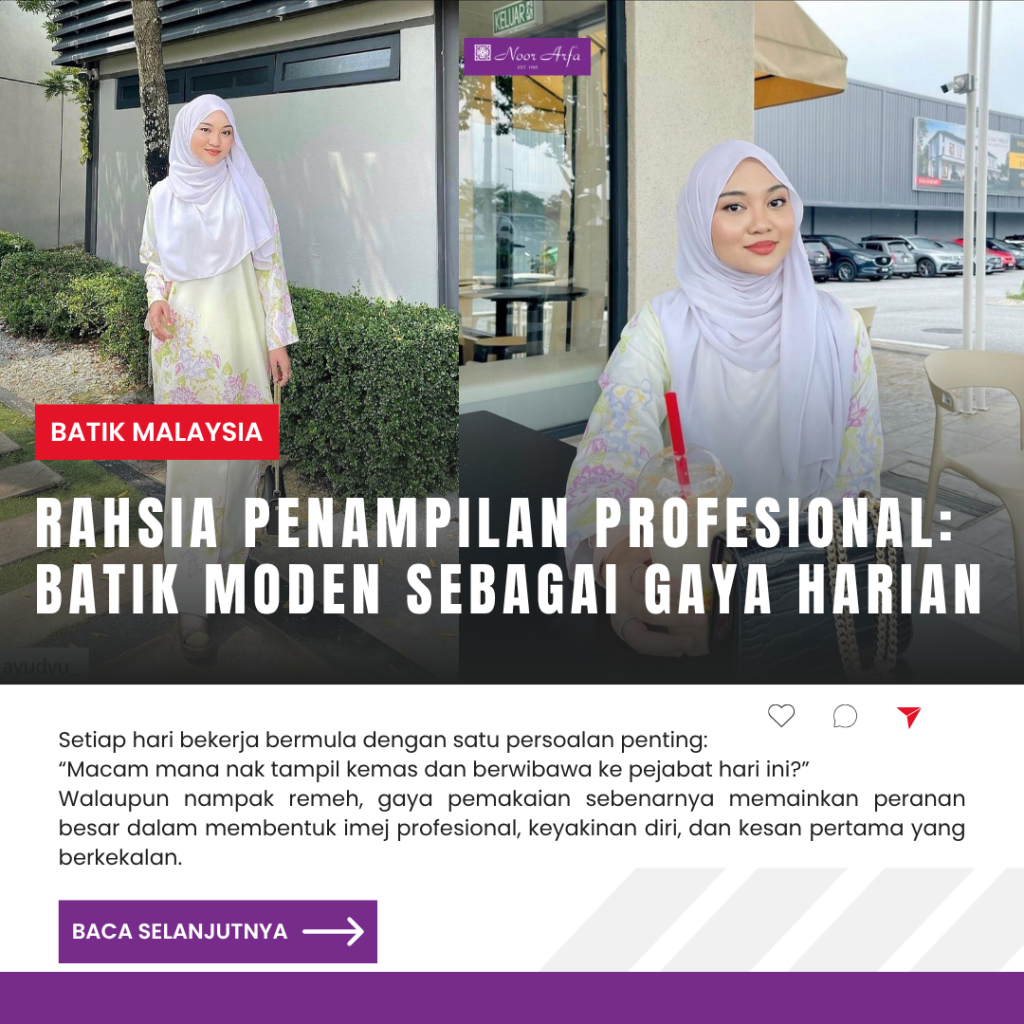 mustafa-z88 0 Noor Arfa 10 Jun 2025 June 10, 2025 “Rahsia Penampilan Profesional: Batik Moden Sebagai Gaya Harian” Setiap hari bekerja bermula dengan satu persoalan penting:“Macam mana nak tampil kemas dan berwi... Continue reading